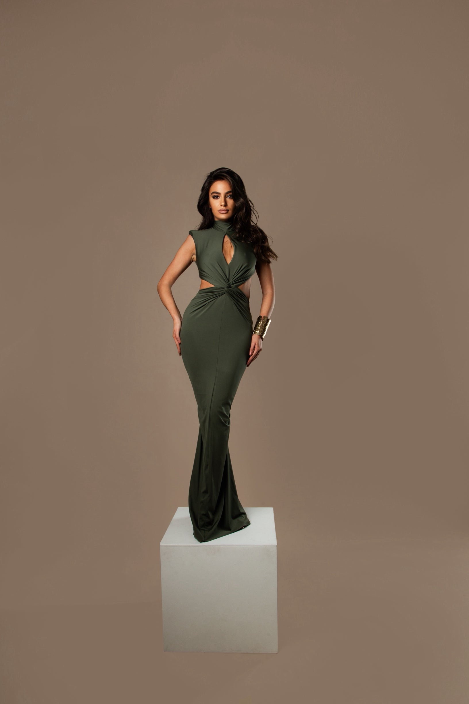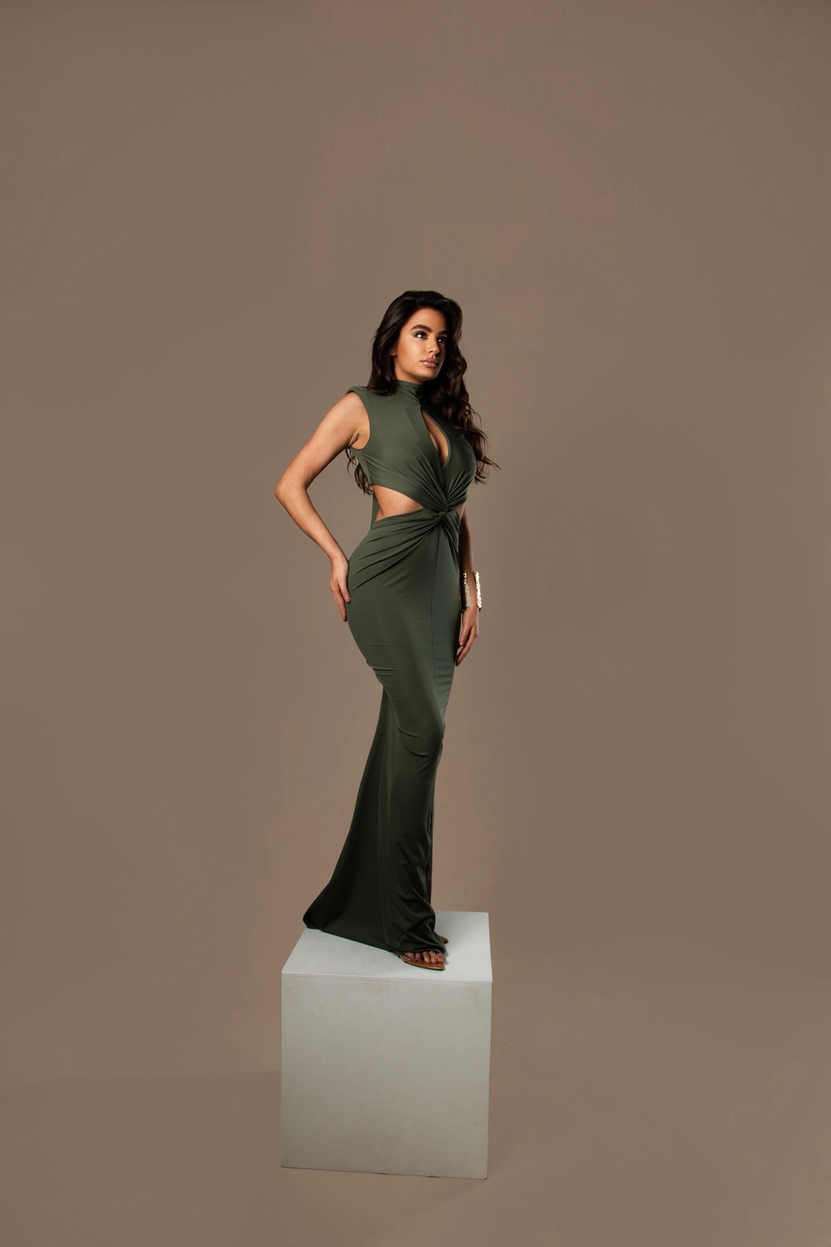 WIST is the perfect fusion of sophistication and allure. Designed with a twisted detail at the waist, it subtly accentuates the silhouette while adding a modern edge. The understated neckline offers just the right amount of allure, and the structured shoulder pads create a bold, confident shape.