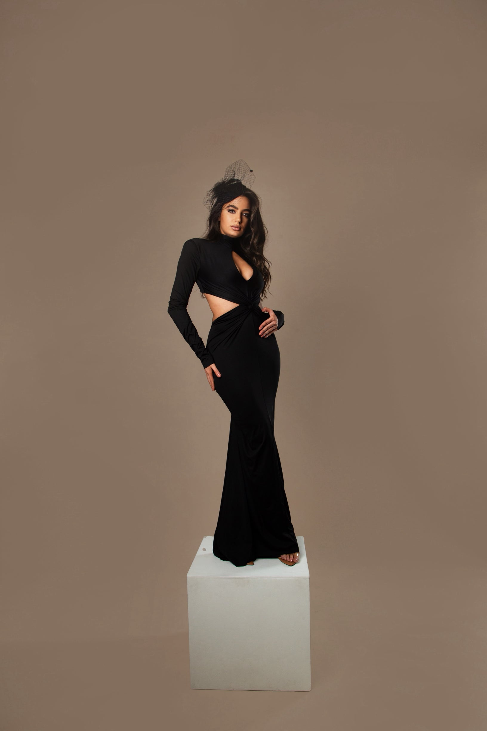 The Aura Dress is a long, elegant gown designed to embody feminine strength and timeless sophistication.
